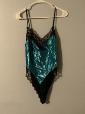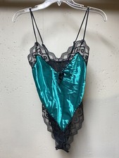Lady Cameo Dallas Green Satin lingerie teddy Size Medium with Lace Vintage