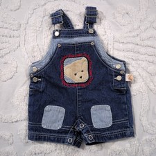 Blue Jean Teddy Bear VTG Embroidered 90’s Overalls Shorts 3-6 Month Cotton Denim