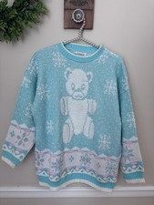 Vintage Arielle Womens Size L Teddy Bear Sweater Pastel Green Pink Grandmacore