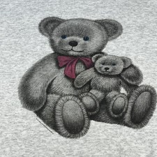 Vintage Teddy Bear Sweatshirt Sz Large W Active Wear Made In USA Crew Neck Gray