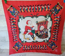 Vintage Christmas Red Handkerchief 22” USA Santa Toy Soldiers Bandanna Scarf