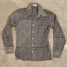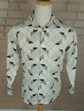 True VTG Mid-century 1960s 1970s Funky Polyester Long Sleeve Print Shirt M/L