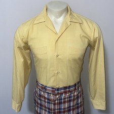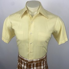 Vintage 1960s Stewarts Dress Shirt Yellow S/S Mid-century Mod Atomic Mens Medium