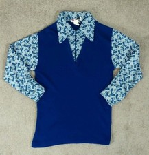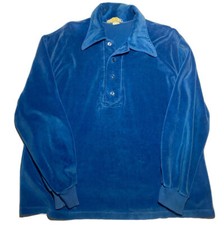 Vtg Velour Polo Shirt Mens Size M/L Blue
