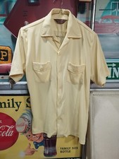 True VTG Mid-century Kingsport Polyester Yellow Shirt M 50s 60s 70s Pocket MCM