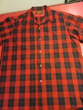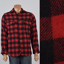 M 1950s Mens Red Black Buffalo Check Wool Shirt Winter Hunting Mid Century 50s