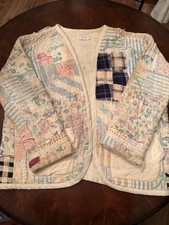Vintage Antique Distressed & Stained Hand Stitched Quilt Jacket Size XL Rare