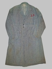 Antique Vtg 1930s Hickory Stripe Denim P-K Service Alls Long Chore Jacket Coat