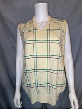 Vtg La Mode Los Angeles ivory Vest V Neck Plaid Cashmerlon Large NWOT
