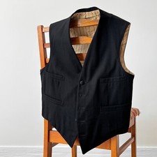 Antique 1940s Wool Black Gentelmen Waistcoat Vest men Size: S-M