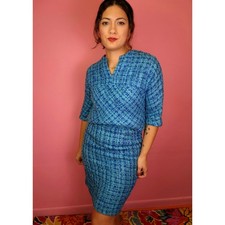Vintage Mid-Century 1950's / 1960's Blue Tweed Boucle 2 Piece Set Top and Skirt