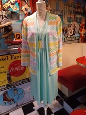 True Vintage Mid-century Polyester 1970s Pastel Dress Set Crochet Jacket MCM M/L