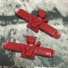 Goody Vintage 80's Barrettes Set of 2 Red With Cats Playing Guitars
