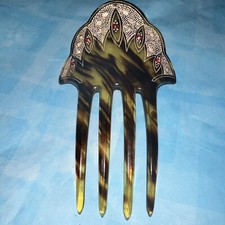 VICTORIAN HAIR COMB RED RHINESTONES LARGE EDWARDIAN CELLULOID HAIR FORK 1900'S