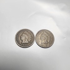 Set of 2 Indian Head Pennies Penny From 1906 One Cent Antique