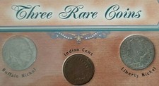 U.S. Coins, "Three Rare Coins", Buffalo Nickel, Indian Cent, Liberty Nickel"