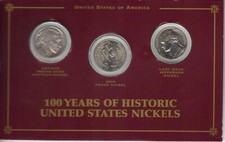 100 Years Of American Nickels - 3 Coin Set - Indian Head, Peace, Last Jefferson