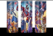 VINTAGE OLD SCHOOL TRANSFORMERS 20 OZ STAINLESS STEEL TUMBLER CUP +LID & STRAW