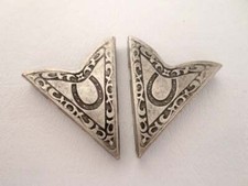 Antique Fantastic Solid 925 Sterling Silver Men's Western Style Collar Tips