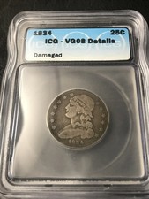 1834 Capped Bust Quarter 25 cents ICG VG08 Det. Silver Coin