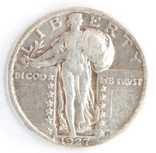 1927 Standing Liberty Quarter Dollar US 90% Silver 25 Cent Coin Philadelphia