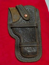 Vintage Antique Tooled Leather Flap Style GUN REVOLVER HOLSTER Wild West Cowboy