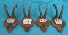 Set of 4 Antique Chamois Goat Horns on carved wooden TrophyPlaques 100 Years+old