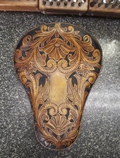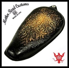 100% Hand Tooled And Stitched Bobber, Chopper Seat. Antique Tan Filigree/ Black