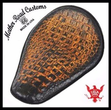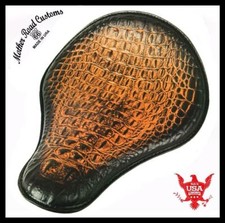 Spring Solo Seat Chopper Harley Sportster Bobber 11x14 Antique Brown Alligator