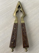 Antique Ornate Brass & Carved Leaves Wood Nut Cracker Approx. from the 1920s