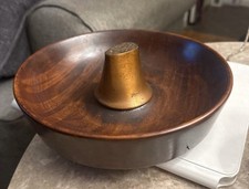 Vintage MCM parsons Nut Bowl Copper Anvil Cracker Design Date 1964 Teakwood