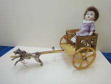 Antique 2" German Bisque Miniature Baby Boy & Dollhouse Metal Pram Carriage