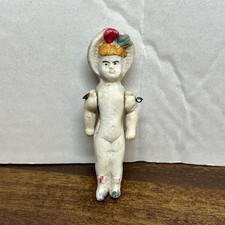 3.5” Antique German Bisque Frozen Charlotte Style, Crude Mold, Hat Wired Arms