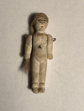 Three Inch Antique German Bisque Frozen Charlotte Style, Crude Mold, Hairpiece