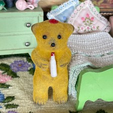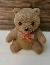 Vintage Flocked Fuzzy Brown Teddy Bear Toy 2" Dollhouse Miniature Resin Nice
