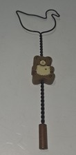 Vintage 8” Miniature Décor Toy Teddy Bear Display Rug Beater Metal Wood