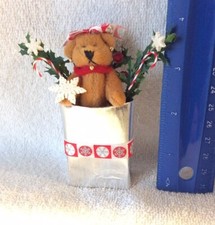 Vintage Artisan Dollhouse Miniature Holiday Teddy Bear In A Gift Bag