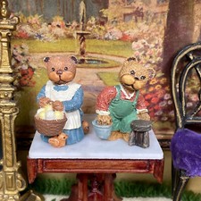 Vtg Miniature TEDDY BEAR COUPLE Dollhouse Stuffed Animal Resin Nursery Statue