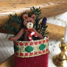 Vintage Original Dollhouse Artist Miniature Christmas Stocking 2" Teddy Bear LOT