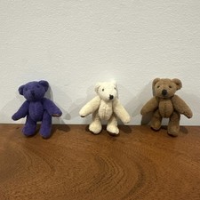 Vintage Tiny Jointed Teddy Bears Purple Creamy Brown Doll House Miniatures 3 Lot