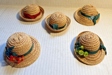 5 X Vintage Miniature small Hats for Crafts, Dolls Teddy Bears
