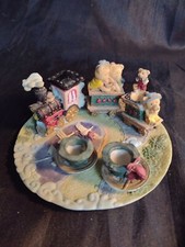 Vintage Collectible Miniature Resin Tea Set--Train & Teddy Bears Doll/DollHouse