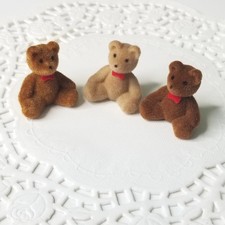 VTG 3 Flocked Miniature 1" Teddy Bears Dollhouse Christmas Craft 1980's
