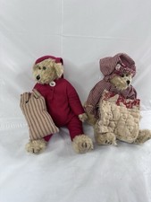 Jointed Bears Night Time Sleepy Pj Teddy Primitive Cottage Vintage 9” Set Of 2