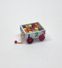 Vintage Dollhouse Miniature Wooden Pull Toy Wagon With Cubes 1" letters Child