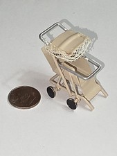 Vintage Dollhouse Miniature Penny Toy Metal Fabric Stroller Pram