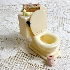 Vintage Dollhouse Miniature Bathroom 40s Toilet w/Paper Roll Tissue Box Duck Lot