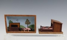 Vintage Artisan Signed CMD or GMD Miniature Dollhouse Wood Farm Toy Pigs Diorama