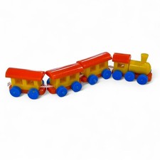 Vintage Dollhouse Train, Bright Plastic 3.5" Locomotive w/ Cars, Miniature Toy
