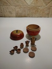 Vintage Japan Miniature Wood Apple Trinket Box Dollhouse Miniature Tea Set Toy